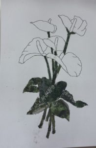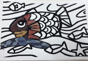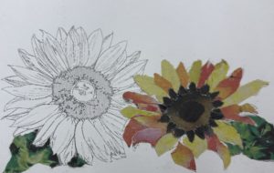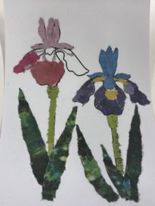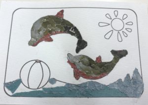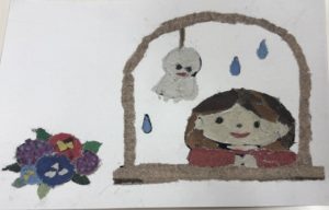 新聞紙のカラー紙面を使ってのちぎり絵です。